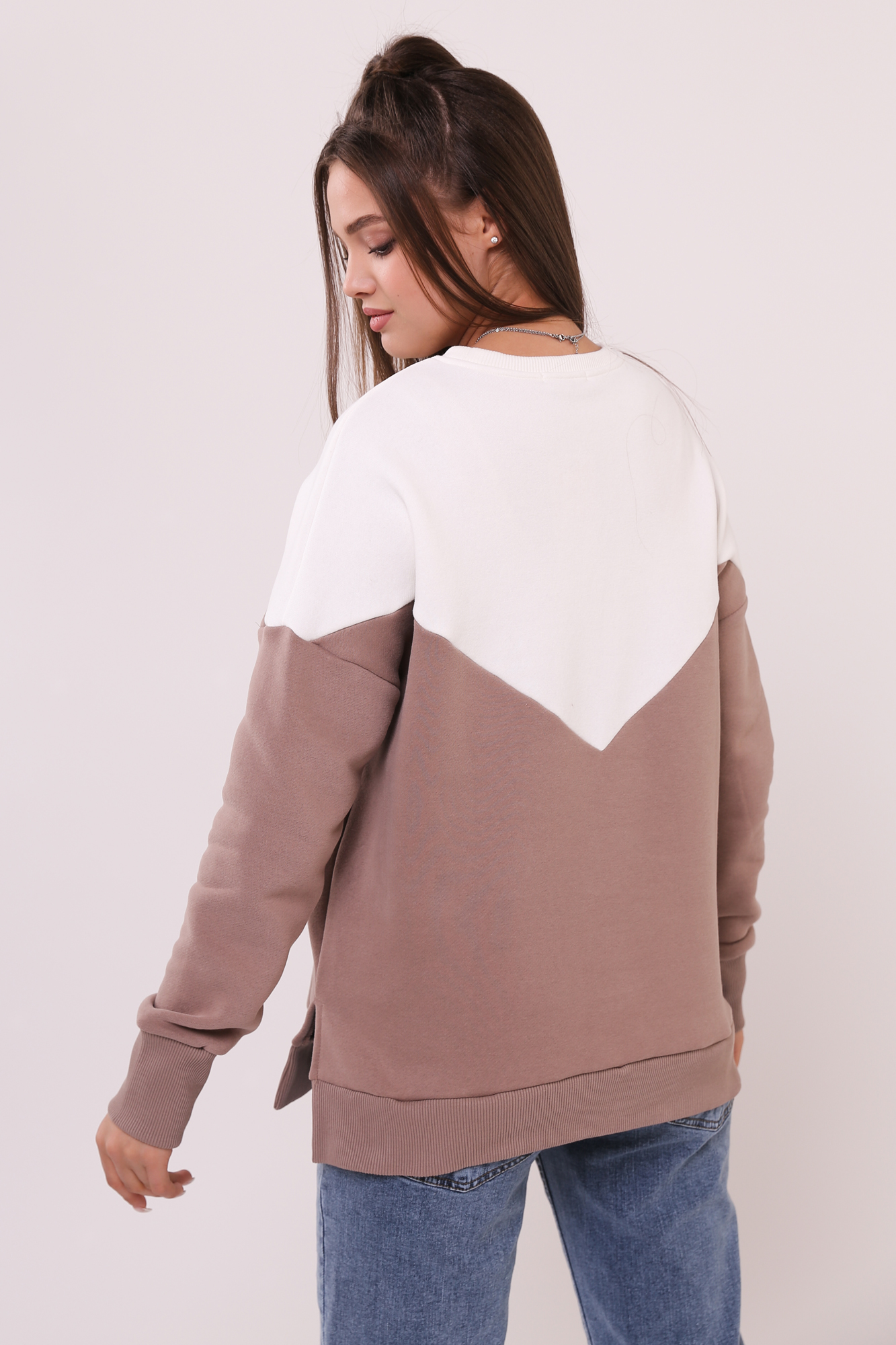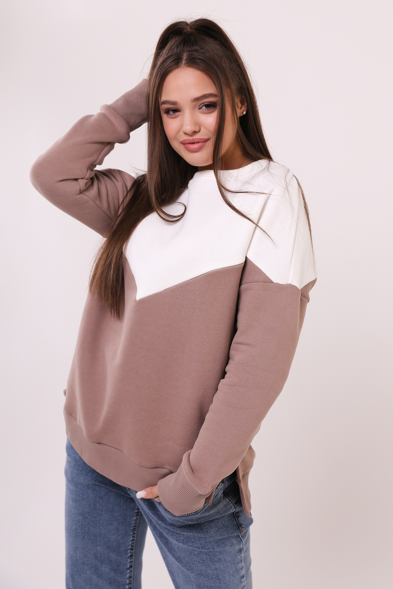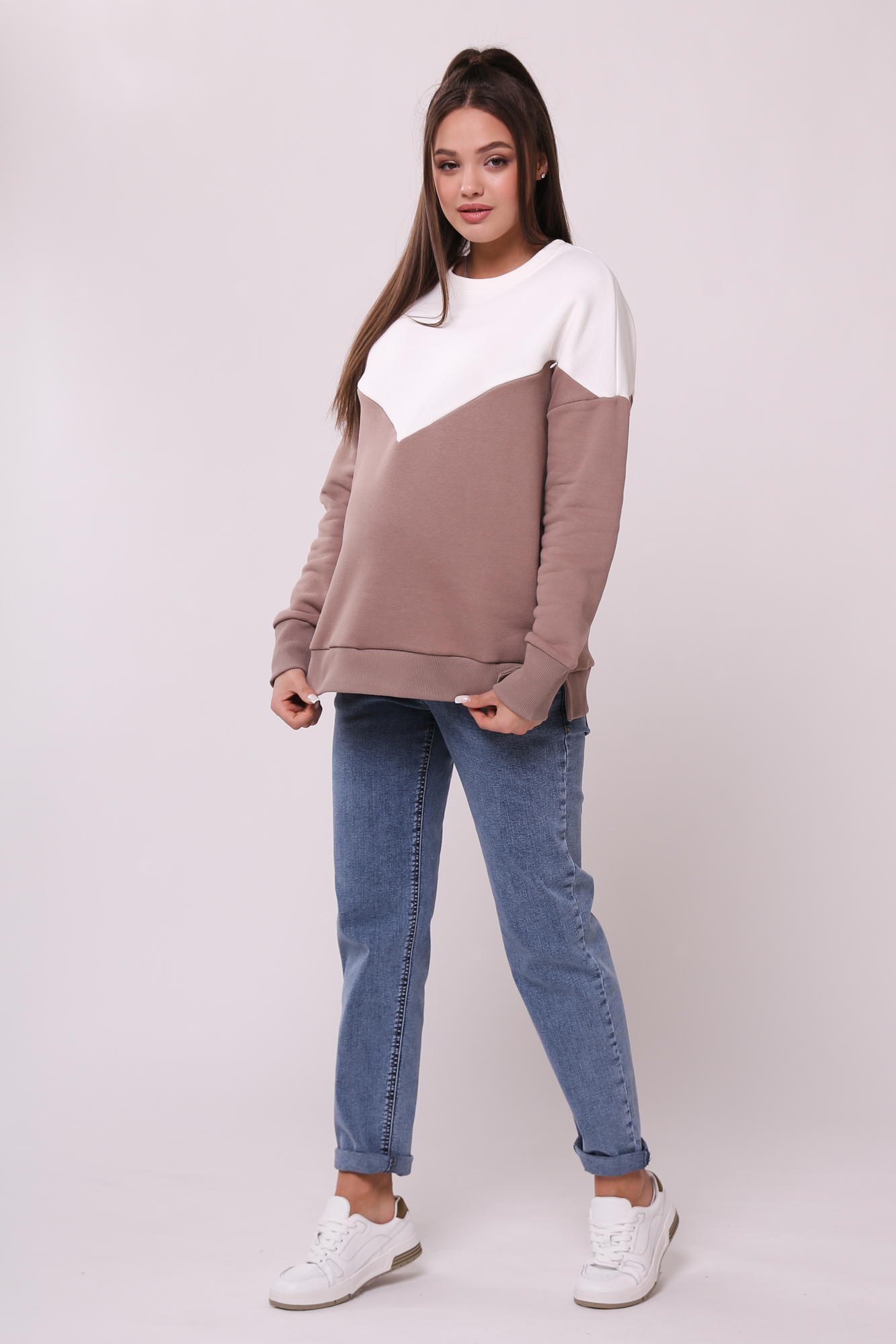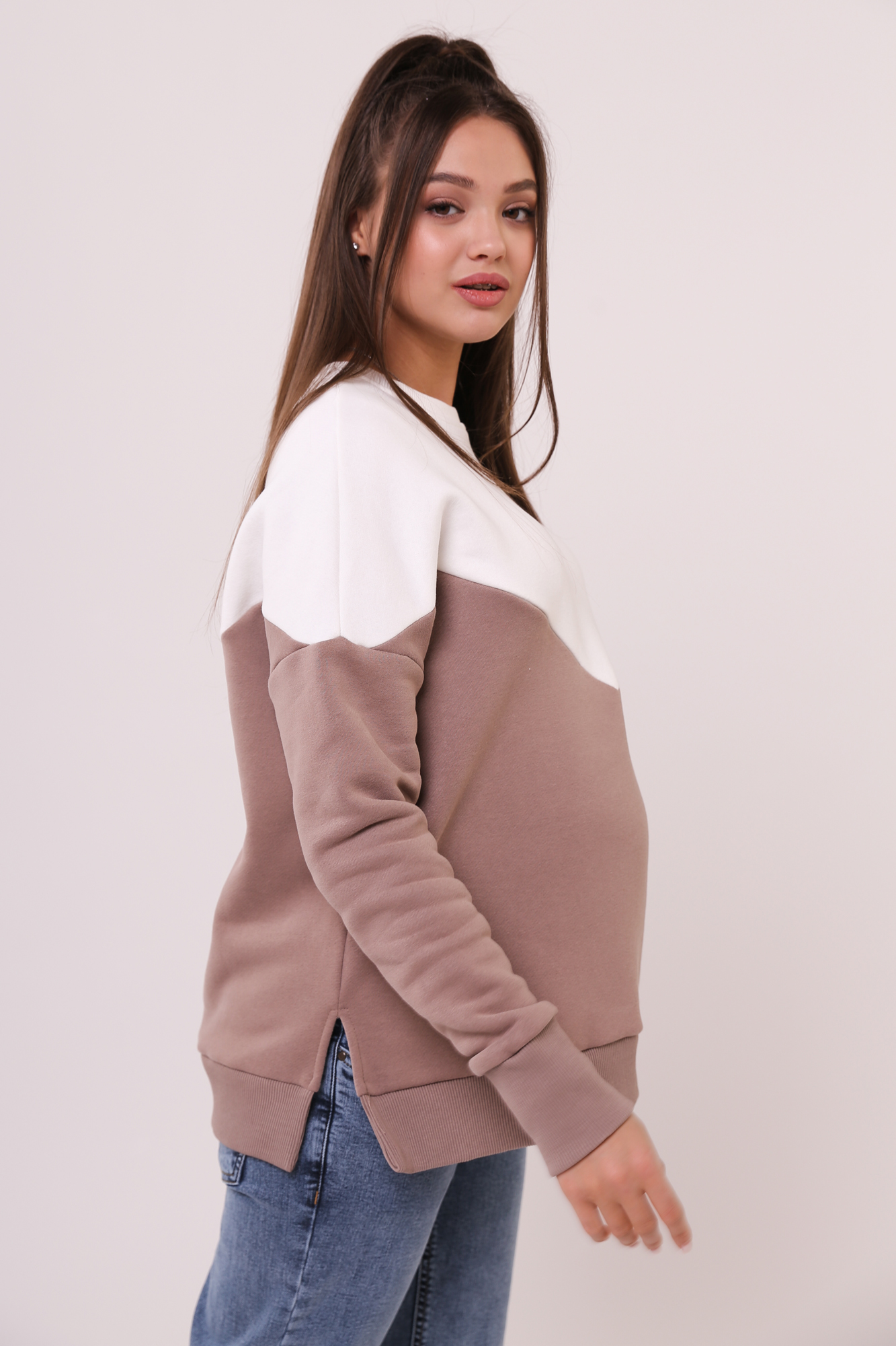 Утепленный свитшот для беременных и кормящих мам выполнен из высококачественного футера велюра с начесом. Конструкция для кормления – диагональные потайные молнии – позволит покормить малыша с повышенным комфортом в любой ситуации. Округлый вырез горловины, длинный рукав, удлиненная линия плеча. Особый крой позволяет носить изделие на всем протяжении беременности и после нее. Модель выполнена в модном стиле Колор Блок.