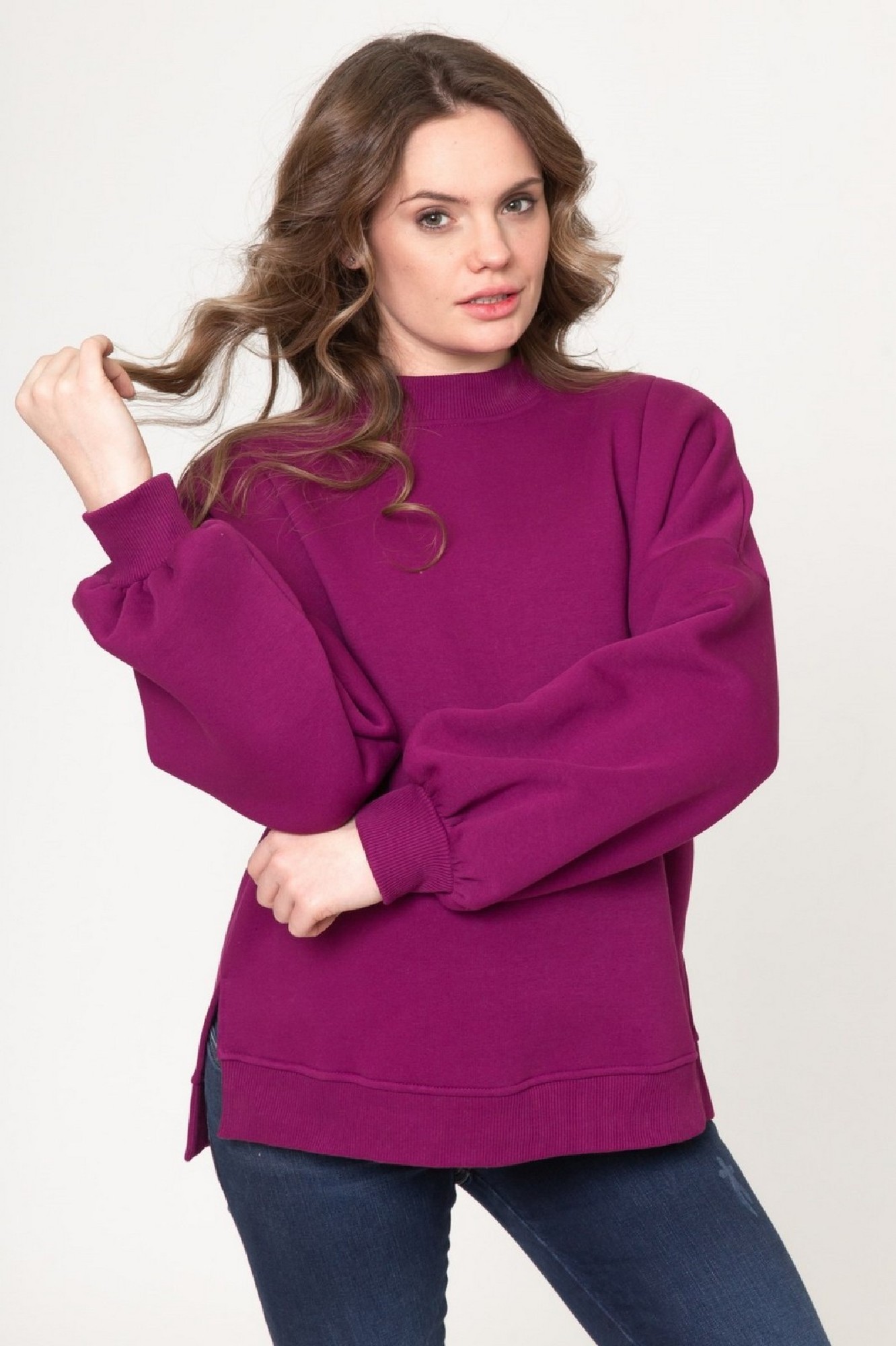 Утепленный свитшот оверсайз из трехниточного футера с начесом для беременных и кормящих. Модель со спущенной линией плеча, воротником-стойкой, разрезами по бокам и оригинальным рукавом. Идеальная посадка на всем протяжении беременности и после родов. Вертикальные потайные молнии позволят покормить малыша с комфортом в любой ситуации.
