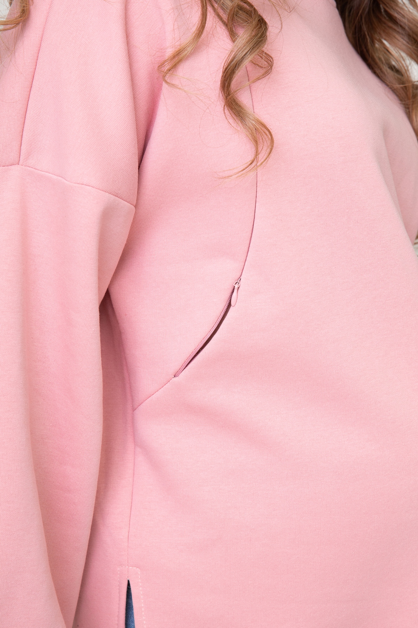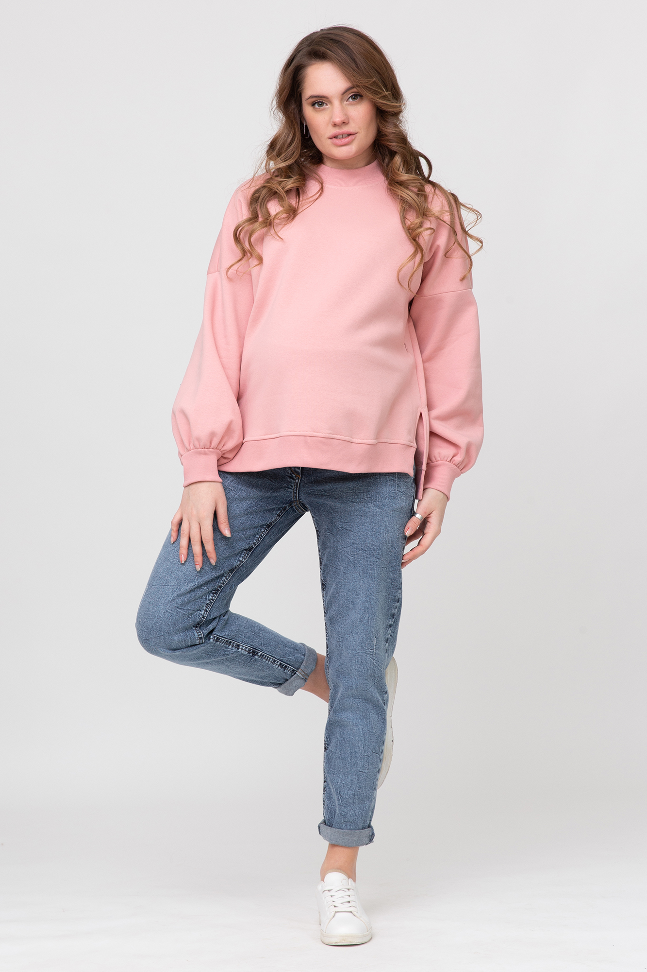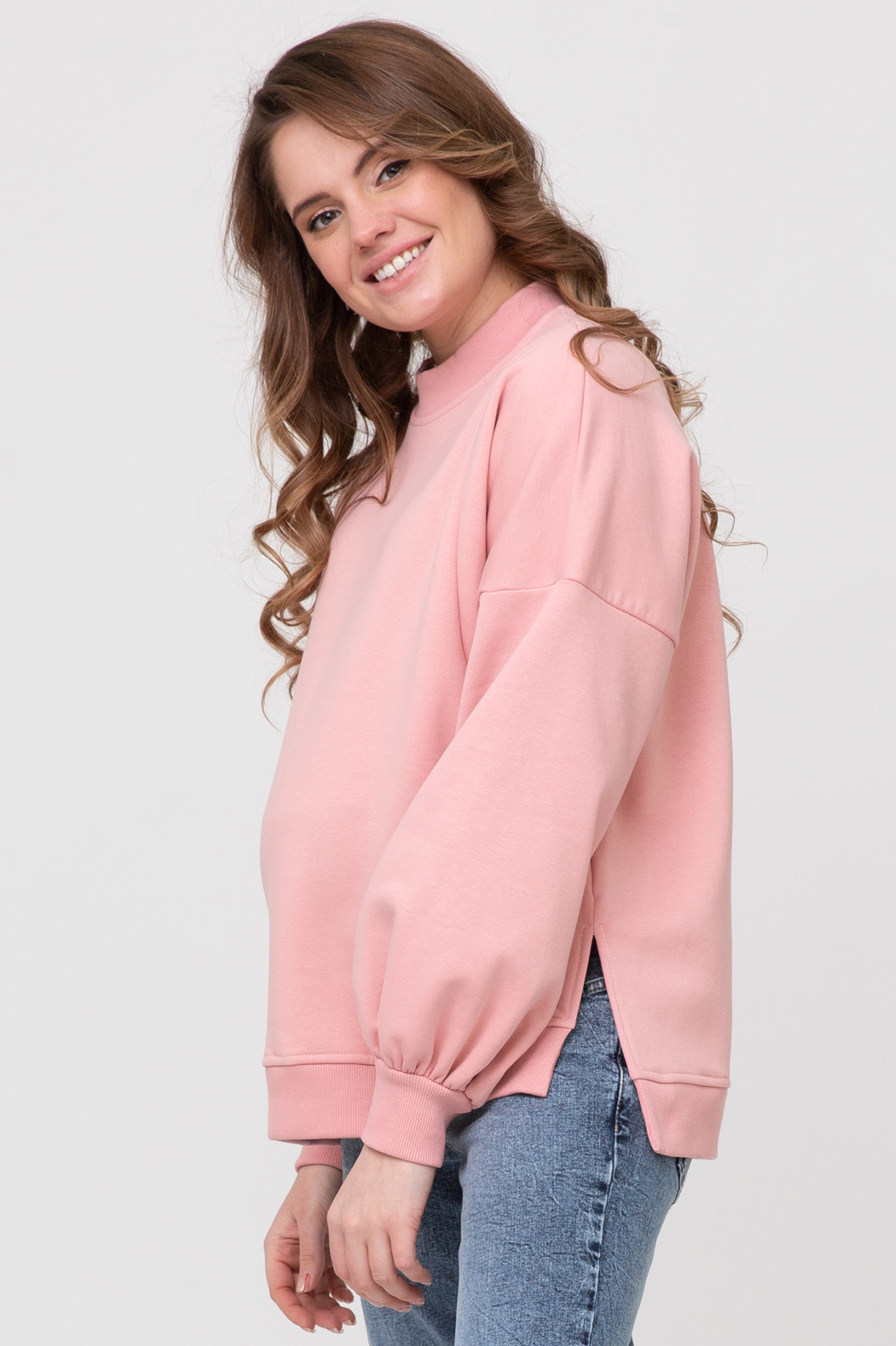 Утепленный свитшот оверсайз из трехниточного футера с начесом для беременных и кормящих. Модель со спущенной линией плеча, воротником-стойкой, разрезами по бокам и оригинальным рукавом. Идеальная посадка на всем протяжении беременности и после родов. Вертикальные потайные молнии позволят покормить малыша с комфортом в любой ситуации.