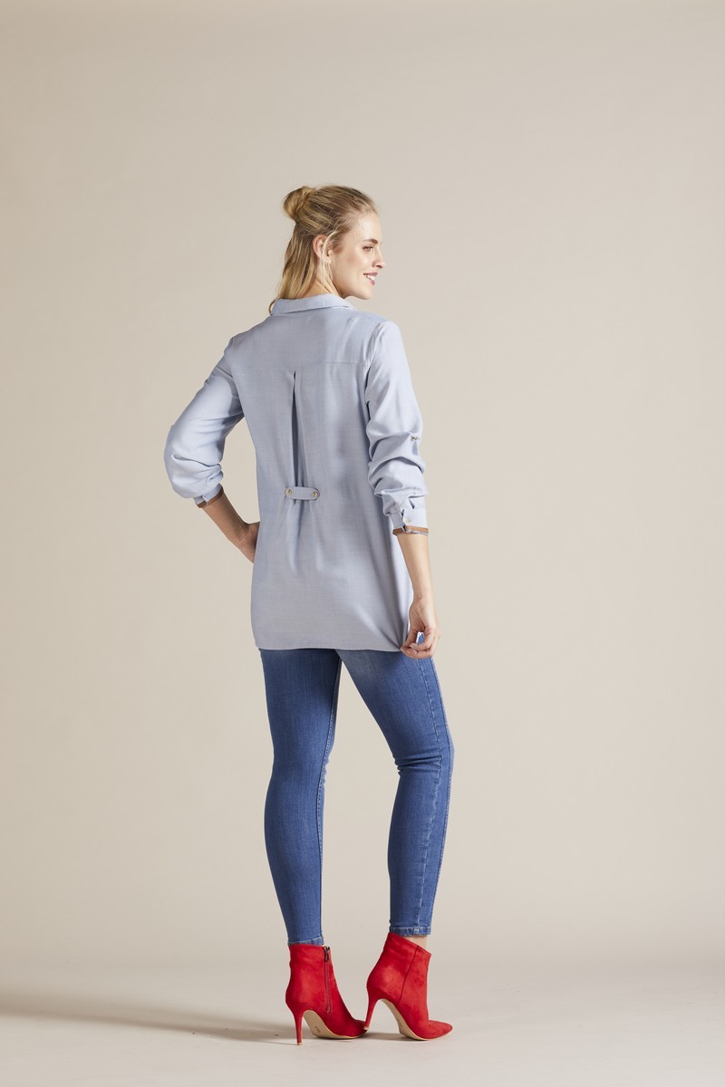 Туника для беременных в классическом стиле. Приталенный силуэт, рукава ¾ на манжетах с возможным подворотом и фиксацией на пуговицу. Тунику можно носить на любом сроке беременности благодаря складке на живот. Идеальная вещь для работы в офисе, деловых встреч и просто на каждый день.