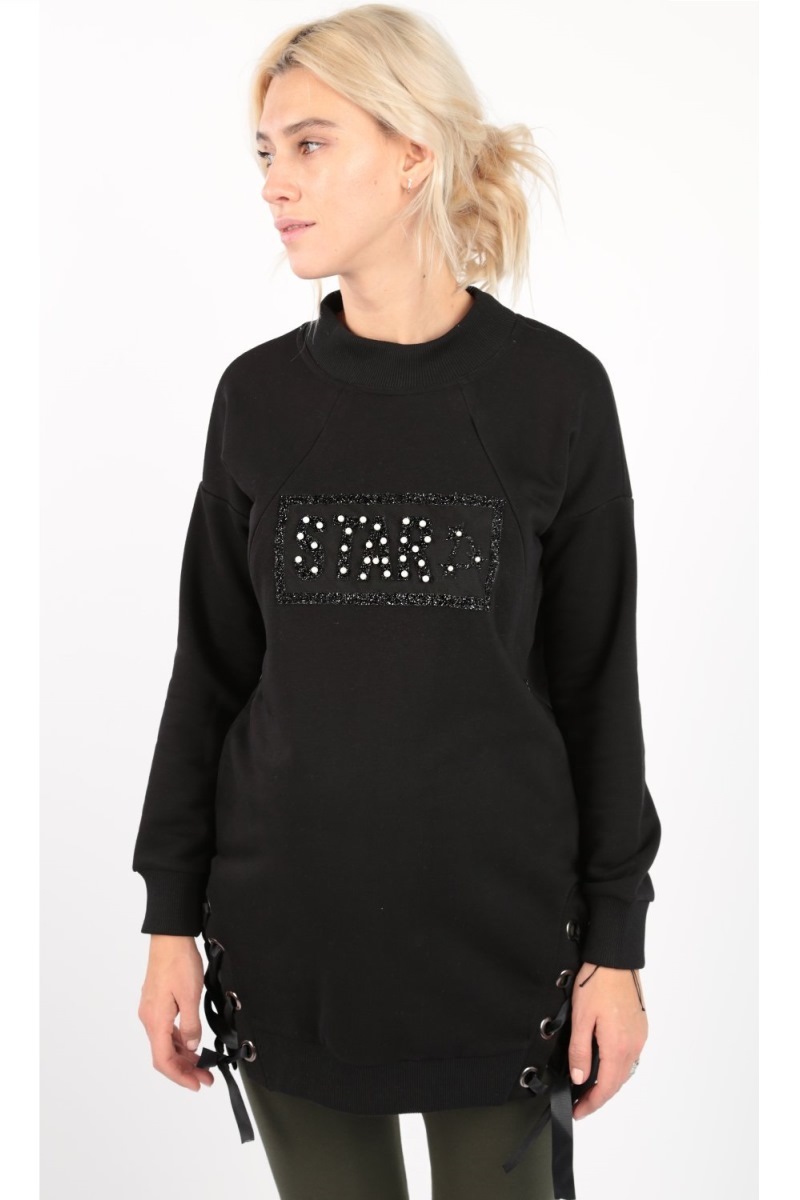 Туника в стиле оверсайз для беременных из футера трехнитки. Модель со спущенной линией плеча, люверсами со шнуровкой по бокам, и секретом для кормления малыша. Шнуровку можно распустить для более свободной посадки туники. Изнанка без начеса.