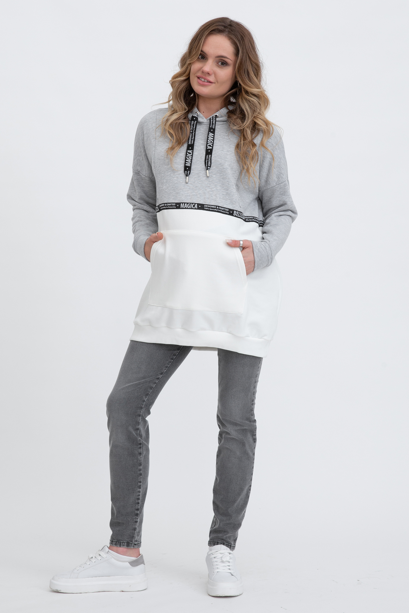 Туника в стиле оверсайз для беременных и кормящих выполнена из высококачественного трехниточного футера (петля). Особый крой позволяет носить изделие на всем протяжении беременности и после нее. Благодаря вертикальным потайным молниям Вы сможете покормить малыша с комфортом в любой ситуации.