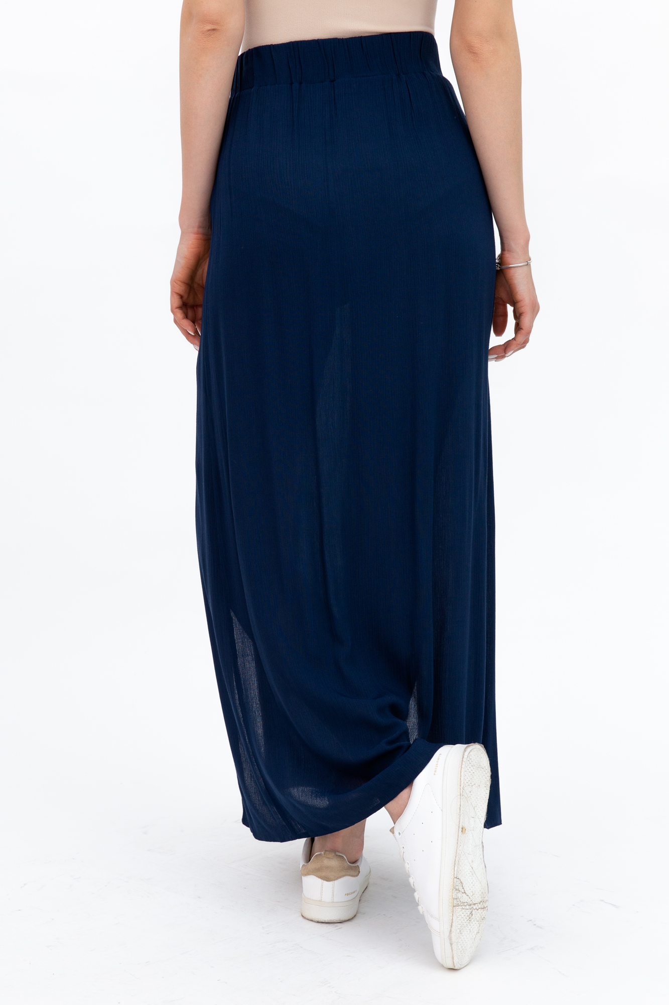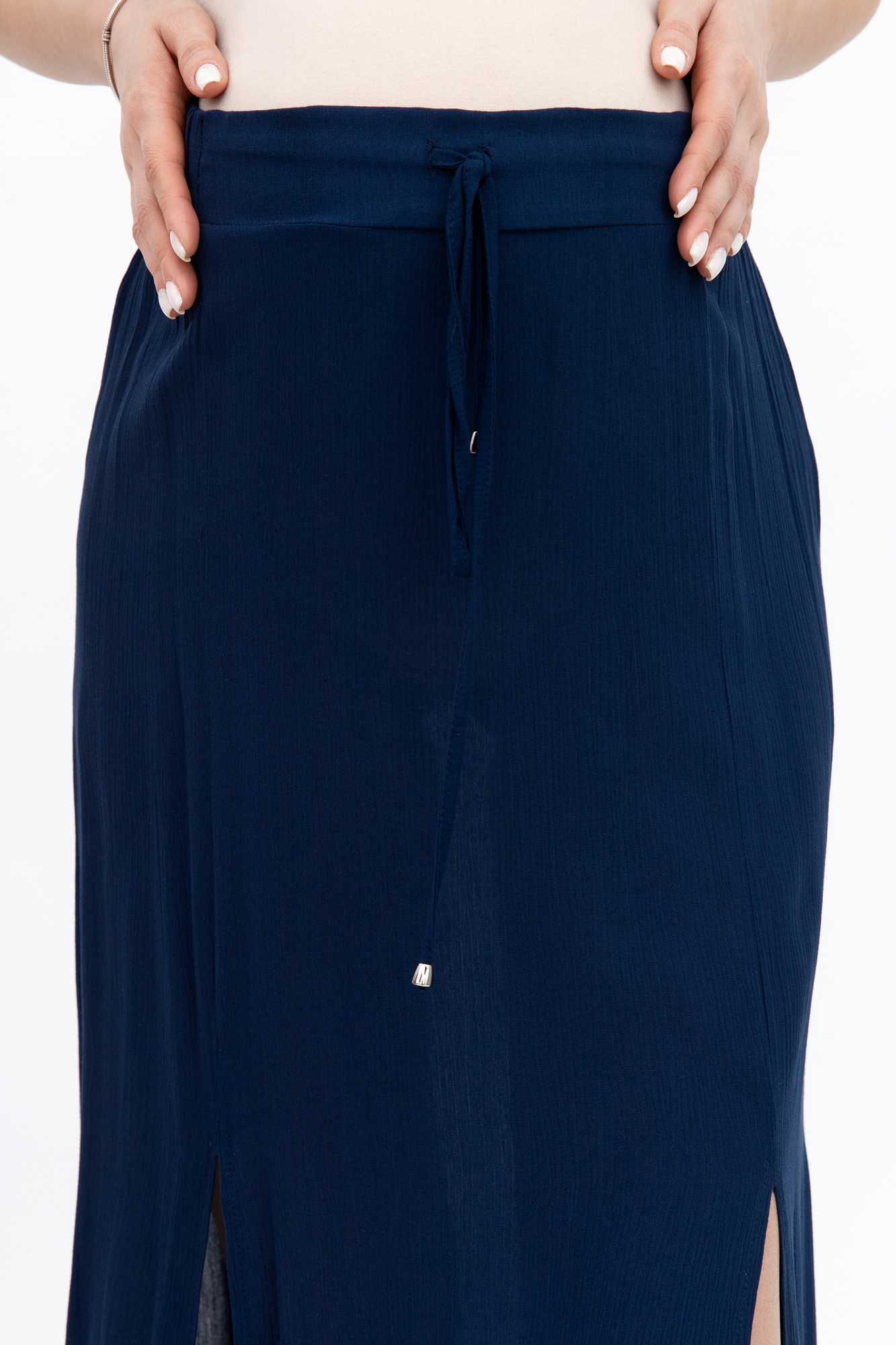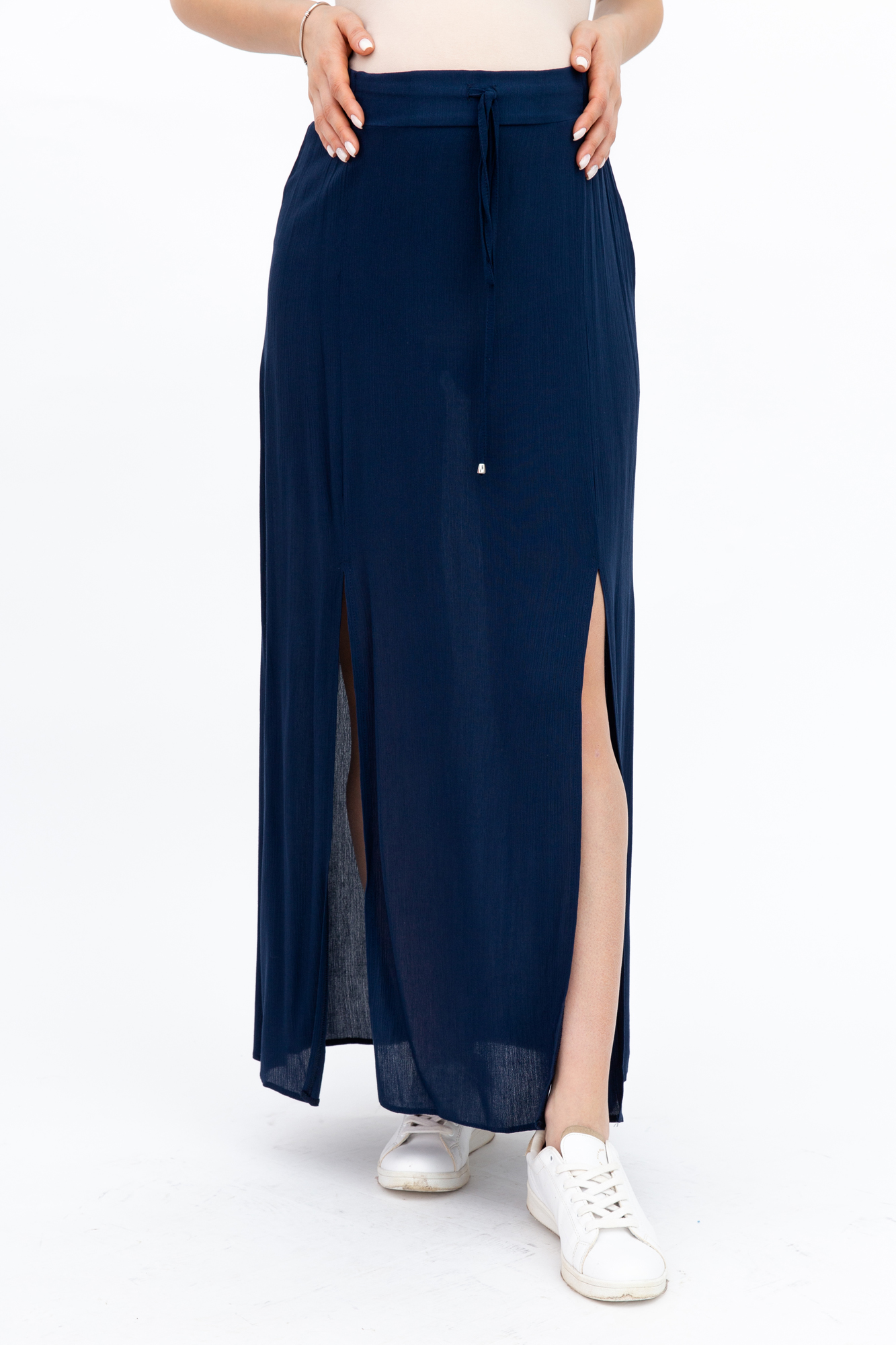 Стильная юбка-макси для будущих мам. Пояс на резинке с кулиской позволяет носить юбку как во время беременности, так и после родов. Юбка выполнена из тонкой легкой ткани, по бокам разрезы. Прекрасно сочетается с приталенными блузками, футболками или майками.