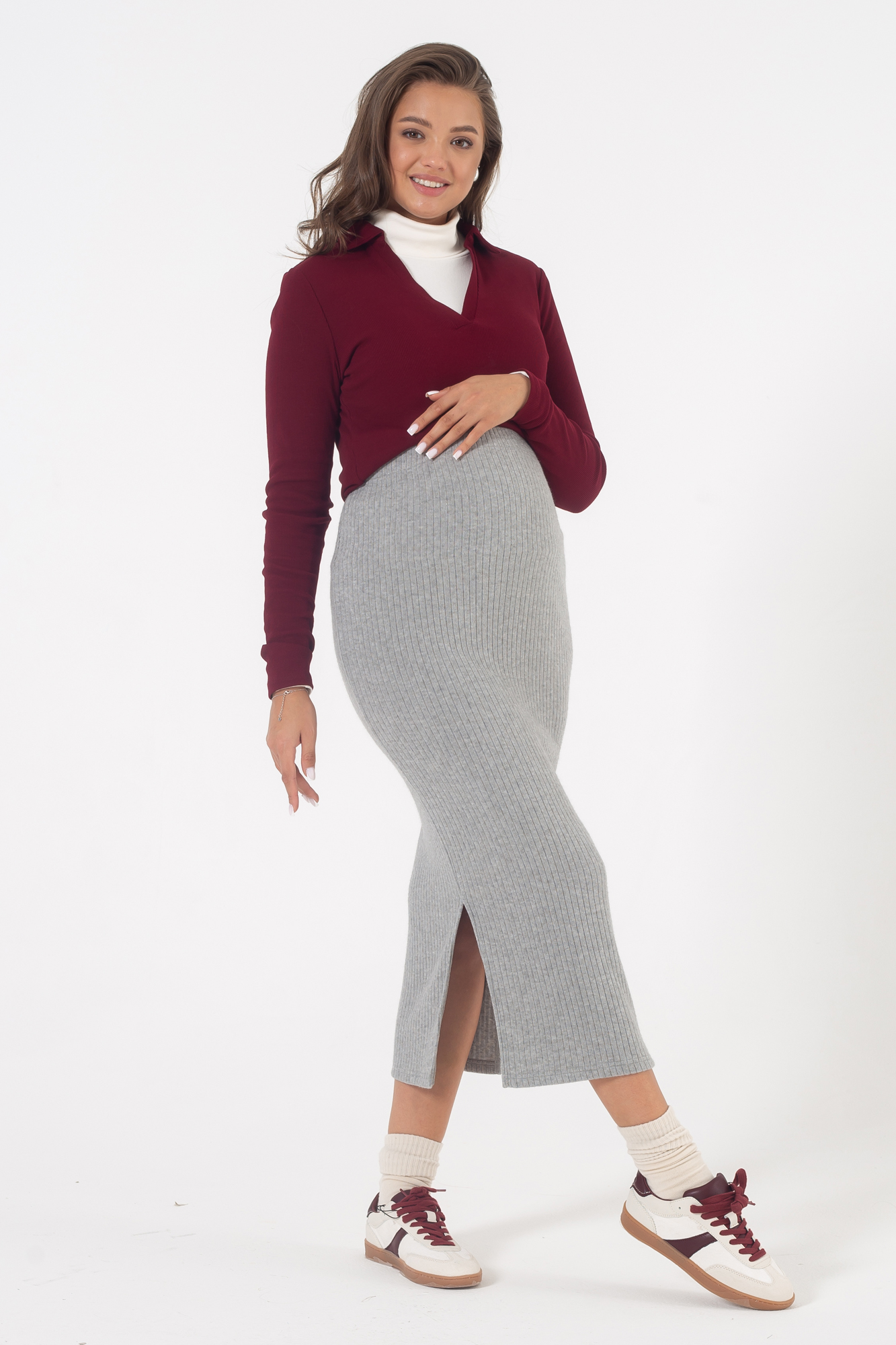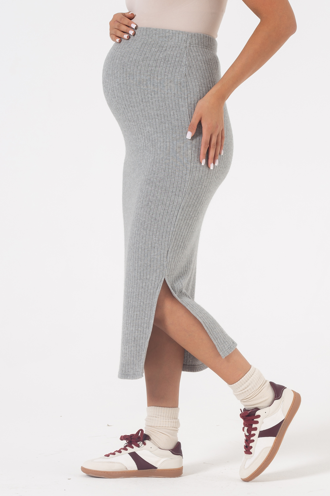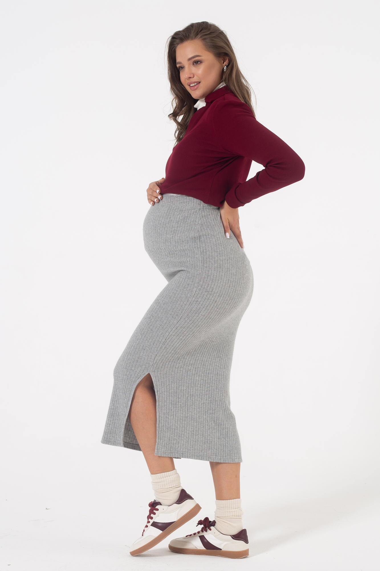 Удлиненная юбка для беременных из трикотажа лапша. Данная модель идеально впишется в гардероб будущей мамы. Для пошива использована трикотажная ткань на основе гипоаллергенной дышащей вискозы. Эластичность материала в тандеме с мягкой резинкой в поясе позволяет носить юбку на протяжении всего периода беременности. Крой зауженный, длина миди до середины голени. По бокам добавлены декоративные разрезы. Облегающая юбка карандаш для беременных универсальна, отлично выписывается в повседневный образ. Теплая и удобная, модель рассчитана на прохладный сезон, но также пригодится зимой.