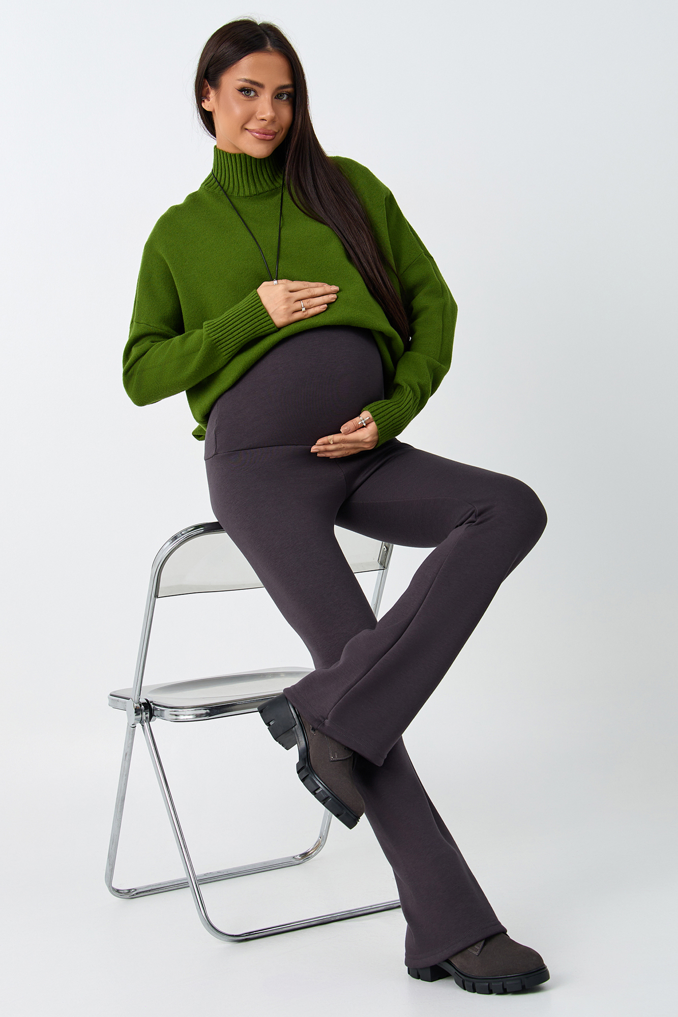 Брюки для беременных на меху клеш выполнены из плотного премиального джерси, утепленного с изнанки искусственным мехом. Зимние штаны оснащены эластичным широким бандажом, который позволит чувствовать себя комфортно на любом сроке беременности, а так же и после неё. Трикотажную вставку изделия можно отрегулировать с помощью утягивающей резинки, фиксирующейся на пуговицу. Комфорт и идеальная посадка обеспечены на протяжении всей беременности, а так же после родов. Универсальные облегающие брюки клеш для будущих мам можно носить в офис, на прогулку, использовать для повседневной носки. Мягкий мех не осыпается в процессе носки, не линяет, не колется. Базовая модель стрейч дополнена сзади кокеткой и накладными карманами, что создает моделирующий эффект пуш ап. Лосины с утеплением и завышенной талией подходят в том числе для девушек и женщин больших размеров. Стильные теплые брюки можно носить холодной осенью, в демисезон и зимой. Состав: 65% Вискоза 30% Полиэстер 5% Лайкра.